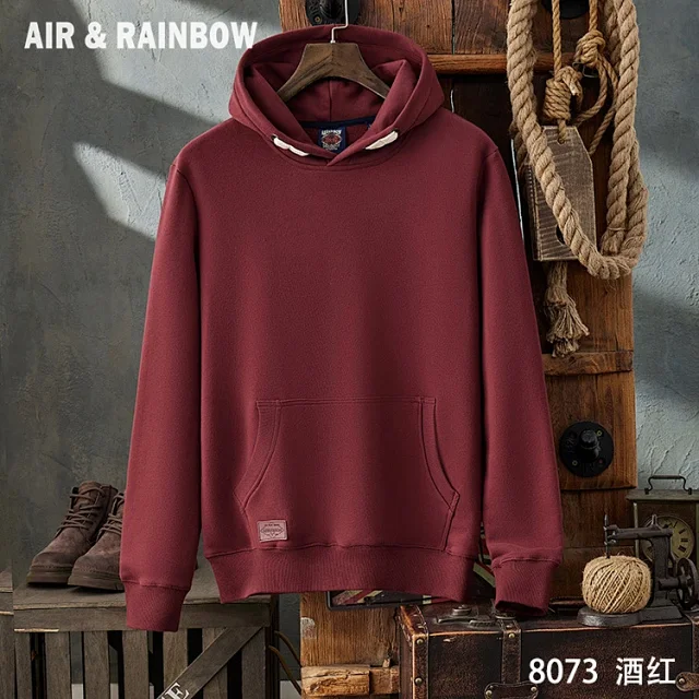 Heavyweight 450g Pure Cotton Fleece-Lined Hoodie with Long Sleeves2