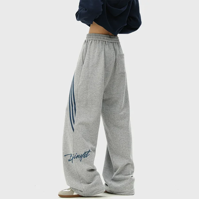 Retro three-stripe draped pants, floor-length straight-leg casual trousers1