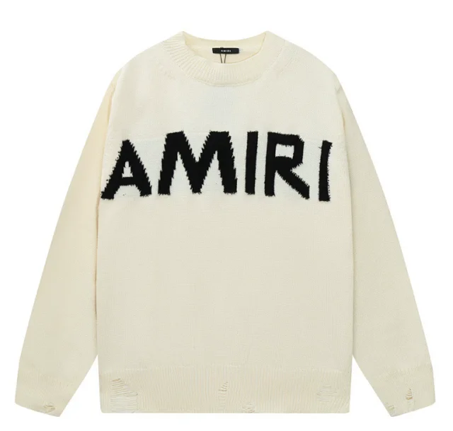 AMI Couple Letter Jacquard Tassel Distressed Hole Sweater
