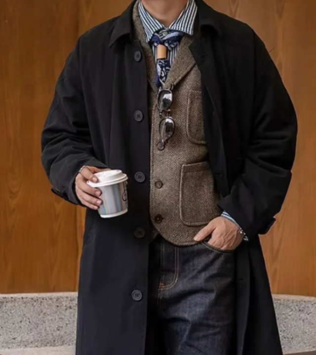 Fashionable long mid-length coat with a collar, loose trench coat