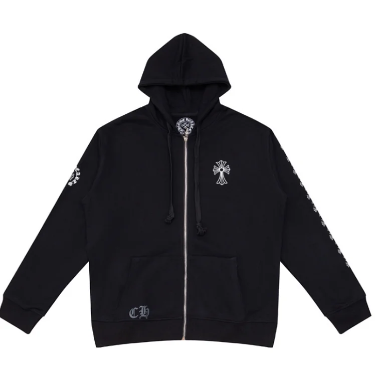 CH Crew Neck Versatile Cotton Cross Colorful Zipper Hoodie