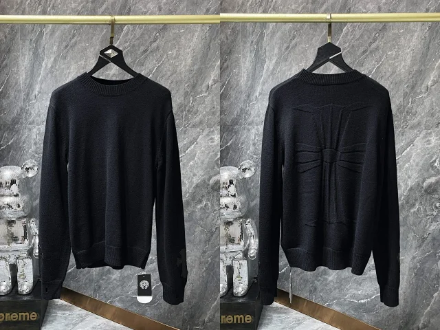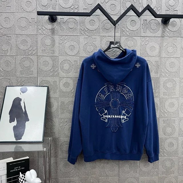 CH Fashion Loose-Fit Cross Applique Knitted Hoodie