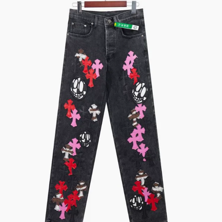 You can buy this CH Fashion9 Multi-Color Letter Patch Cross Casual Jeans go to Mulebuy