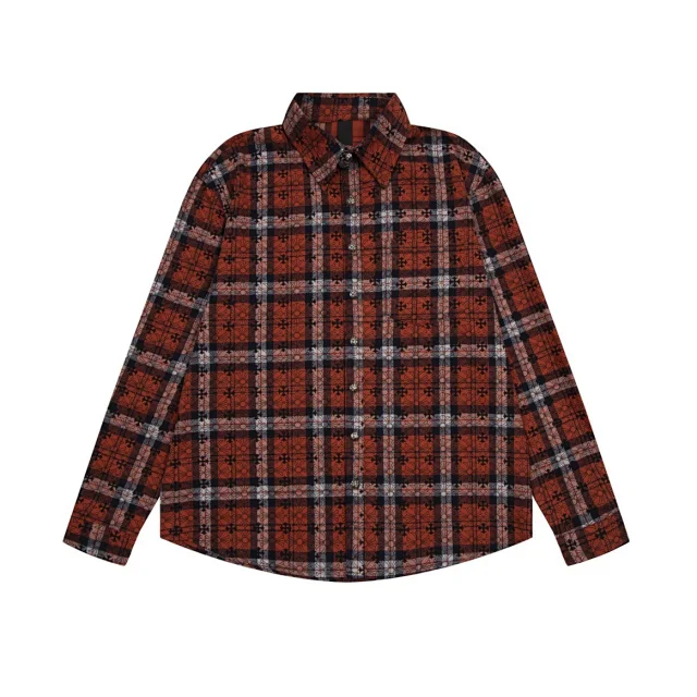 CH Cross Patchwork Dark Plaid Vintage Long-Sleeve Shirt
