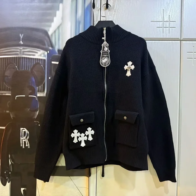 CH Vintage Zipper Polo Collar Cross Cardigan Knit Sweater