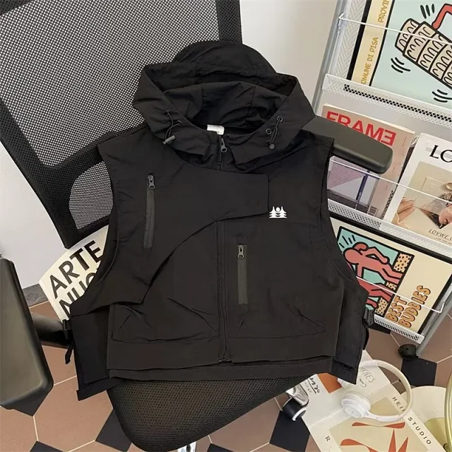 Short Retro Mountain-Style Sleeveless Couples Hooded Vest1