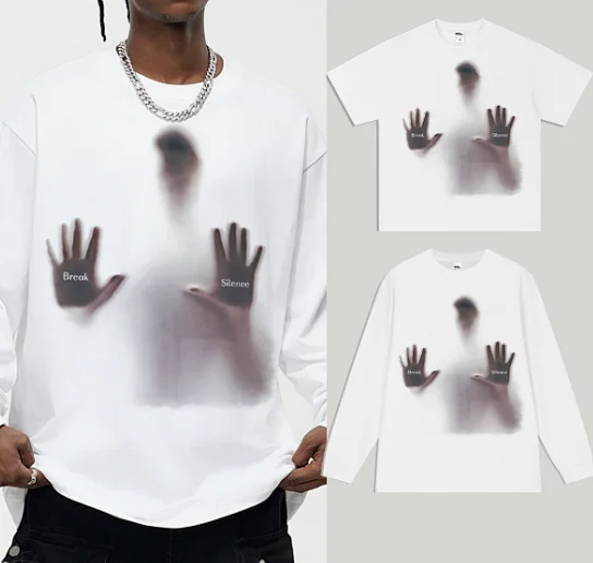Break the silence with a heavyweight, short-sleeved T-shirt with a street print