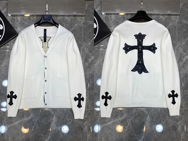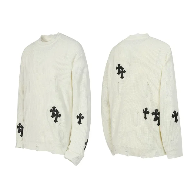 CH Casual Cross Patch Knit Sweater with Round Neck
