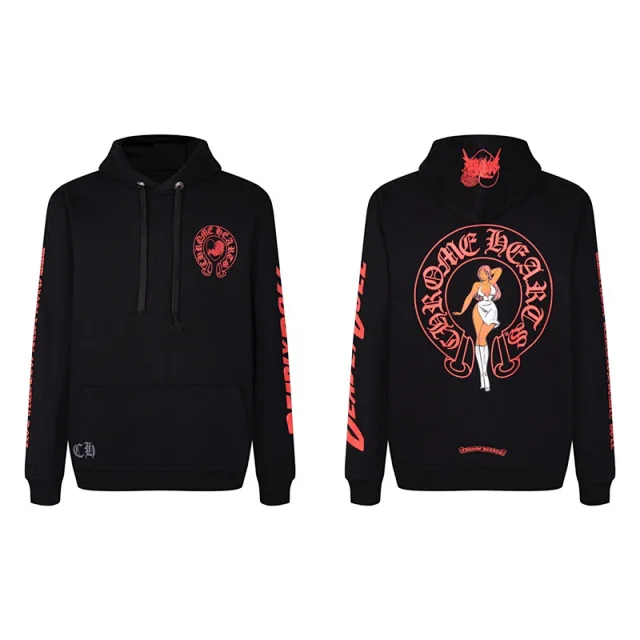 CH Round Neck Versatile Simple Letter Horseshoe Classic Hoodie