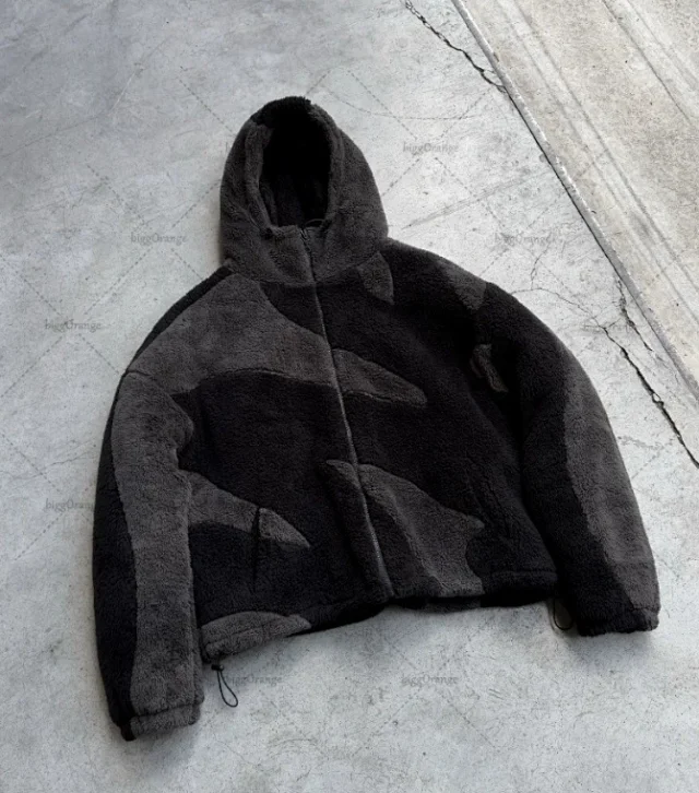 Faux fur patchwork zip-up hoodie4