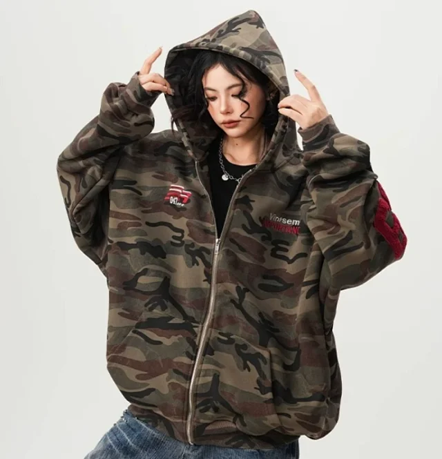 Versatile Camouflage Loose-Fit Fashion Hoodie Jacket