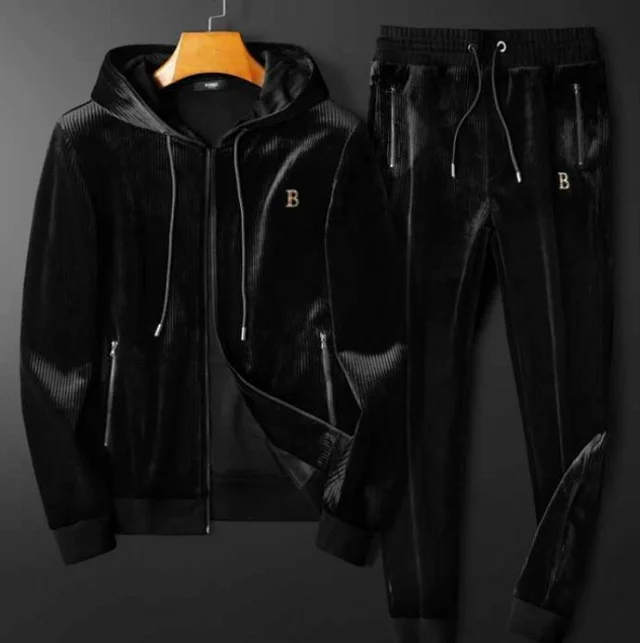 Trendy velvet jacket with fashionable loose casual pants and a casual sports hoodie set
