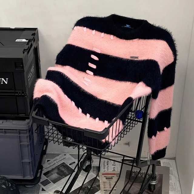 Comfortable Couples Casual Color-Block Striped Crew Neck Sweater2