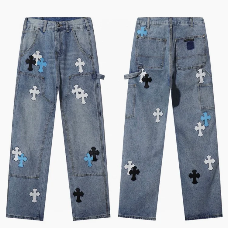 C H Autumn and Winter Trendy Brand Three-Color Patchwork Denim Cargo Jeans