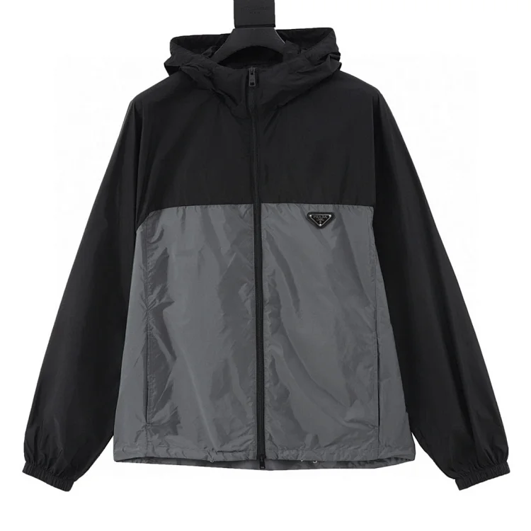 PR Black Grey Stitched Hooded Jacket Jacket