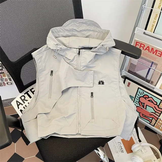 Short Retro Mountain-Style Sleeveless Couples Hooded Vest