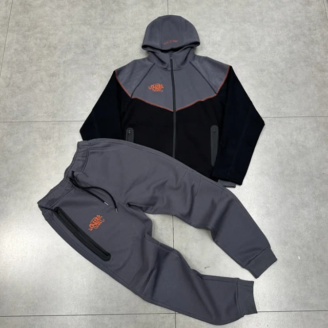 S splicing color-blocked plush unisex hoodie coat set
