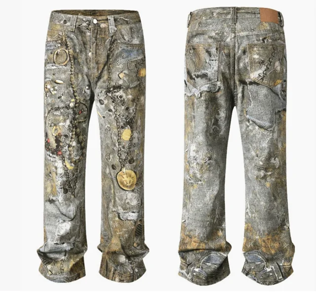 European and American high street American trendy men's and women's multi-bag cargo trousers, straight leg casual loose ripped Pants/Shorts