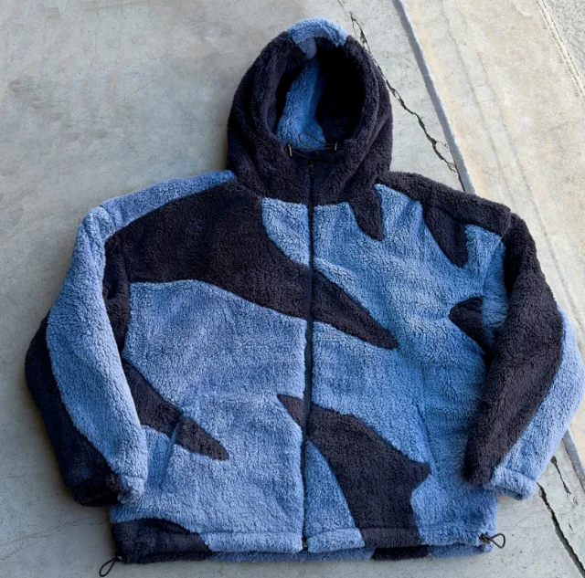 Faux fur patchwork zip-up hoodie2